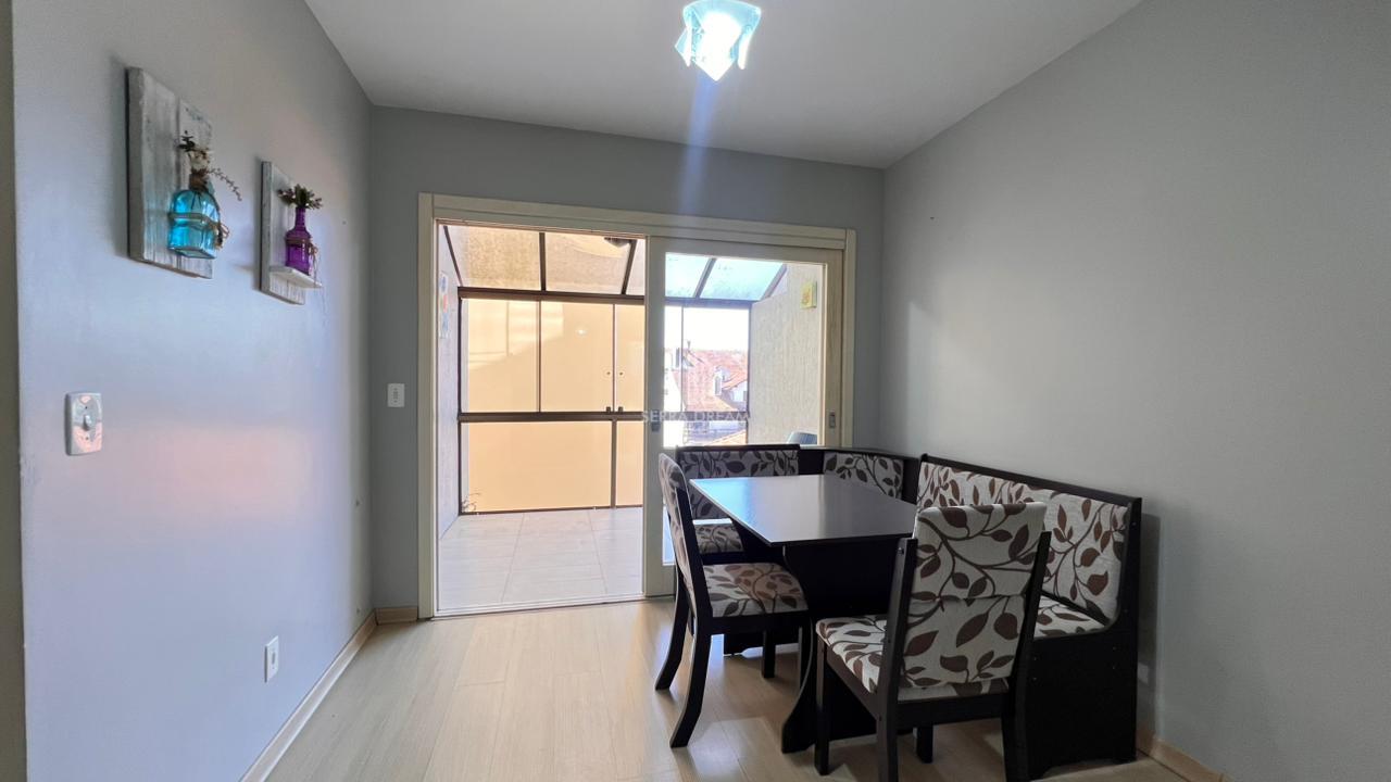 O imóvel conta com dois dormitórios, sendo uma suíte, além de banheiro social. A sala de estar é integrada e possui sacada, trazendo mais luminosidade e bem-estar ao ambiente. A cozinha já está mobiliada, com área de serviço separada, e o apartamento dispõe ainda de uma vaga de garagem.