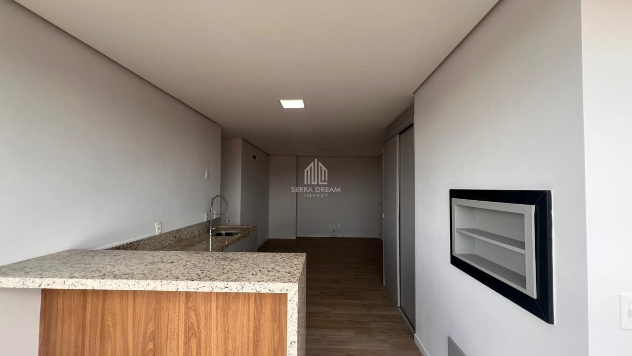 O imóvel dispõe de sala de estar e jantar integradas à cozinha, criando um espaço moderno e funcional, além de área de serviço separada. São dois dormitórios, sendo uma suíte, além de banheiro social. Para completar, conta com uma vaga de garagem.